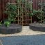 Обрамлення для грядок можуть бути виготовлені своїми руками з будь-яких підручних засобів. Для цих цілей підійде лоза, пластик, камінь, деревина. Допускається навіть використання грядок без обрамлення. У цьому випадку дизайн спирається на незвичайну форму конструкції.