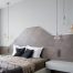 Для обробки стін у спальні краще використовувати сірі шпалери світлих відтінків