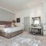 Для красивого оформлення інтер’єру в сірому кольорі в просторій спальні рекомендується підбирати оздоблювальні матеріали, прикрашені декоративними орнаментами та малюнками великого розміру. Вигідним рішенням стане використання шпалер з квітами для стін, а також геометричними фігурами і лініями. Допускається застосування абстрактних зображень і принтів в класичному стилі.