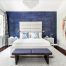 Добре в інтер’єрі спальні виглядає синя оздоблення, надає заспокійливу дію на людину. Її можна комбінувати з бежевими, пурпуровими, темно-коричневими, білими і сірими відтінками. Допускається використання фотошпалер.