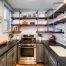 Додаткове місце для зберігання речей на маленькій кухні можна забезпечити, використовуючи різноманітні полиці і гачки