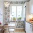 Яскравий акцент у вигляді шпалер з візерунками додасть маленькій кухні святковість