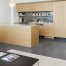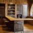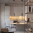 Приклад зонування кухні в квартирі-студії з допомогою полиць стелажів