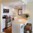 Приклад візуального розширення простору кухні за рахунок невеликої арки, виступає в ролі барної стійки
