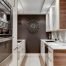 Ще один цікавий варіант розміщення меблів на маленькій кухні – дворядна планування. В цьому випадку меблі розташовується уздовж протилежних стін, найчастіше розділяючи їх по призначенню: з одного боку займають поверхні для приготування їжі, а з іншого – розташовуються обідня зона відпочинку.