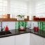 - цілісна скляна поверхня на кухні візуально збільшує простір, роблячи кімнату просторіше і свіже;