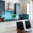 Ніша над газовою плитою облицьовані мозаїкою синього кольору