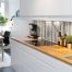 Щоб надати фартуху акуратний завершений вигляд, між нижньою частиною аркуша і стільницею можна приклеїти спеціальний плінтус, а нагорі – пластиковий штапик. Ціни, фото фартухів для кухні з пластику можна заздалегідь подивитися на сайтах виробників.