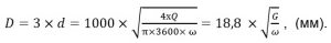 - Формула визначає діаметр гидрострелки по потужності теплогенератора. ΔT-різниця температур подачі/обратки — 10°C: