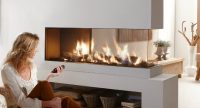 - таке розміщення дозволяє збільшити розміри кутового каміна. Завдяки цьому декоративна компонента інтер’єру житла збільшиться;