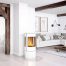 Скандинавський стиль в інтер’єрі припускає використання білого кольору як основного, тому варто віддати перевагу камінів суворої форми монохромних відтінків