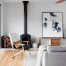 Приклад оформлення дров’яного каміна у вітальні в скандинавському стилі