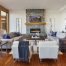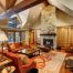 Використання дерева в якості оздоблювального матеріалу для каміна використовується при оформленні інтер’єрів вітальні в сільському стилі кантрі