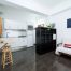 В квартирах-студіях 2017 року немає місця стоїть окремо техніці. Вся вона повинна бути вбудована в стіни і меблі. Навіть якщо простір досить велика, приховати меблі в кухні можна за глухими рівними фасадами без ручок. Такий прийом візуально об’єднує простір кухні і вітальні, як видно на фото інтер’єру квартири-студії 30 кв. м. Барна стійка, яка є одночасно роздільником між кухнею і вітальнею і місцем для прийому їжі, як і раніше популярна в сучасних студіях.